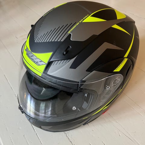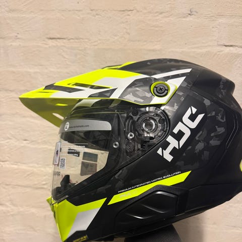 Hjelmen kombinerer det praktiske med en åpningshjelm og sikkerheten/stilen til en karbonhjelm. Den har et bredt synsfelt og sitter veldig godt på hodet.