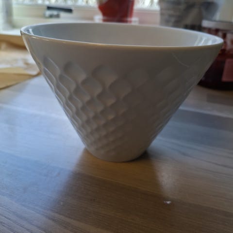 Keramikkskål fra Graveren keramikk i en nydelig mintgrønn farge. Diameter 18 cm. Et bittelite nagg på undersiden av skålkanten, ellers i fin stand.