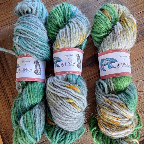 NinaPetrina håndfarget garn flerfarget grønn/lilla