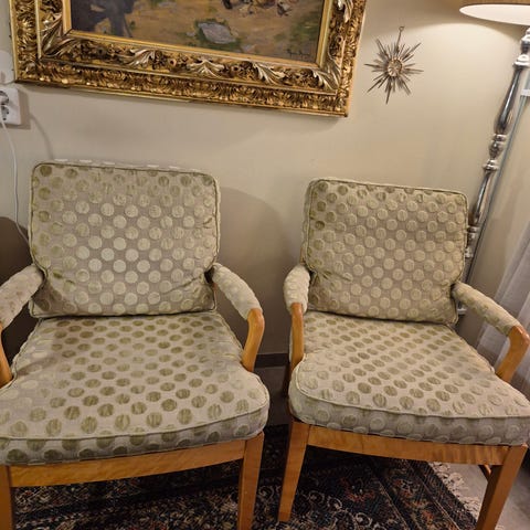 P.S Har flere stoler av samme type, hvis man ønsker å bestemme stoff selv. Da kommer eventuelle utgifter til stoff i tillegg.