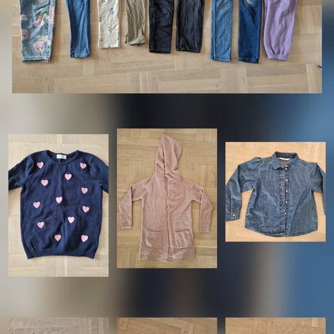 Selger en klespakke med totalt 28 plagg. Noen av plaggene er helt nye og aldri brukt. Det er klær fra ulike merker.