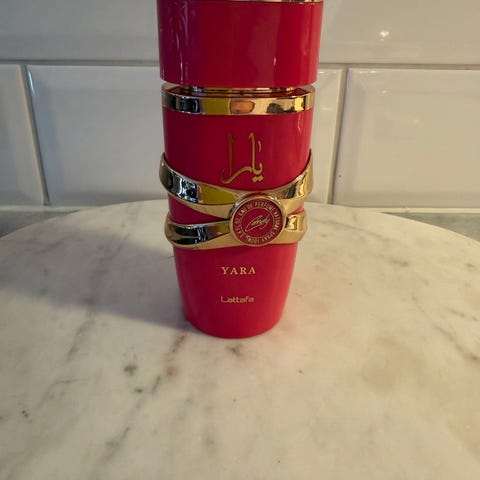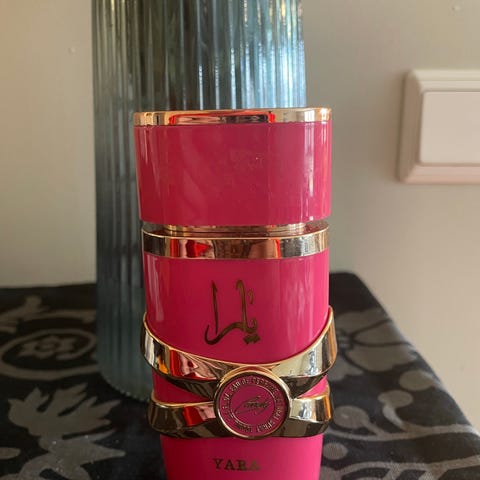 Lattafa Yara parfyme 100 ml. Flasken kommer i en rosa og gullfarget design med tilhørende eske. Egnet som duft til daglig bruk eller ved spesielle anledninger.