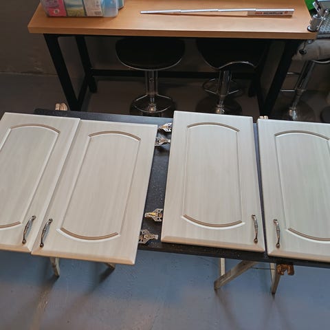 Kjøkkendører IKEA med klassisk profil i hvit utførelse. Flere fronter i ulike størrelser, både tette dører og vitrinedører med sprosser og glass. Dørene har integrerte håndtak/knopper i metall.