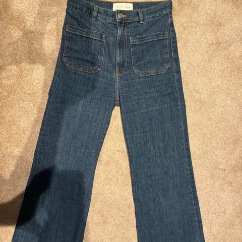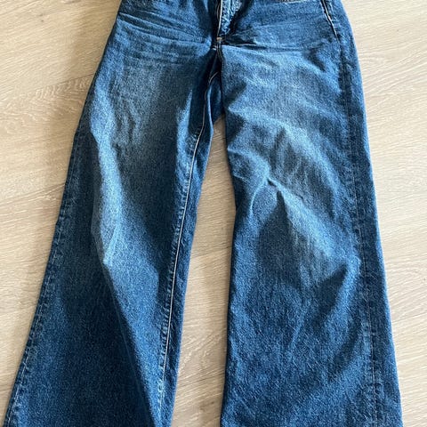 Jeanerica River jeans for dame i lys blå farge. Modellen er «High Retro Straight» med høyt liv og rette ben. Størrelse 32 med livvidde W25/32. Buksen er laget hovedsakelig av bomull med noe elastan og resirkulert polyester for lett stretch og komfort. Klassisk femlommersdesign med baklommer og beltehemper.