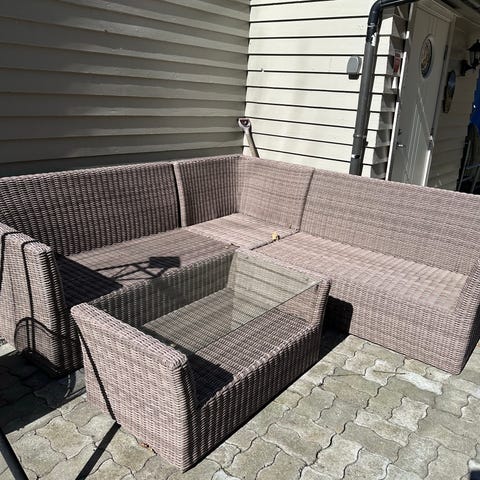 Hagesett loungesett kunstrotting grå med bord og puter