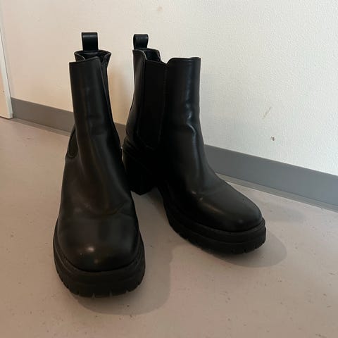 Veldig kule svarte boots/støvletter som dessverre blir lite brukt da jeg har mange. Lagt inn såler pga. venstre hæl i skoen har en flat skrue som stikker litt opp. Har gått fint å bruke skoene med disse sålene.