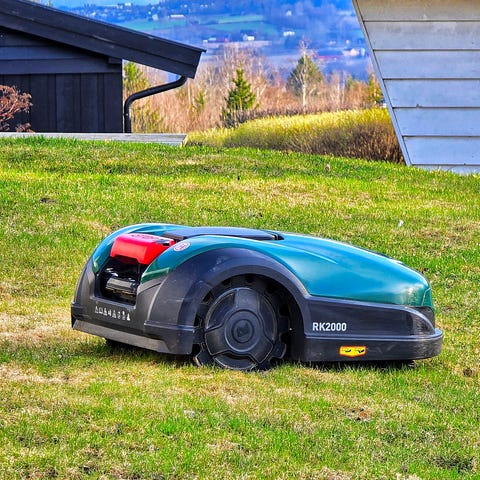 Har en fantastisk robot klipper som kun er gått 4-5 klipp i vår hage . Denne har 4WD og klatrer bratte skråninger som en lek 38 grader