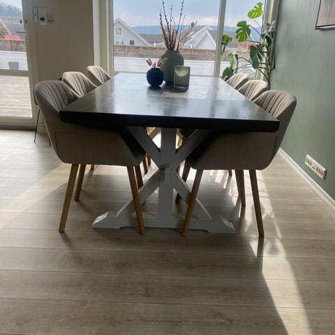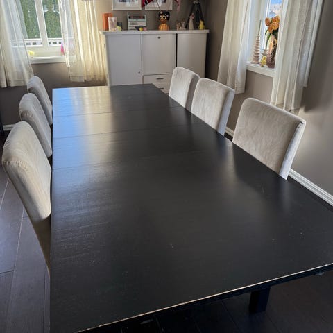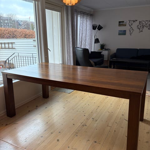 Selger et stort og solid spisebord. Bordet ble kjøpt i 2014 og har vært godt brukt men er fortsatt fullt funksjonelt