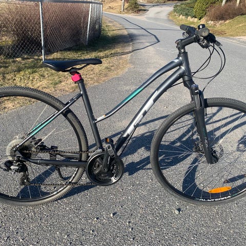 TREK Dual Sport 2 sykkel for dame/Junior i størrelse XS. Sykkelen har lav innsteg-ramme. Dempegaffel foran.