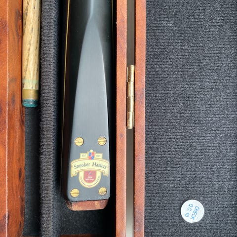 Selger en Jason Owen snooker kø. Køen har en sprekk i bakstykket. Sprekken har ingen innflytelse på spill eller avgir noen ulyd . Kim Bye har fylt sprekk med lim.