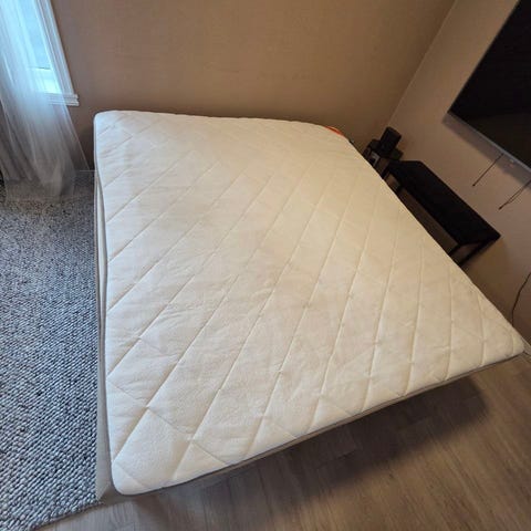 Senger er brukt. Det vil seie at det er synlige bruksmerker. Madrasser er rengjort, men har noe misfarger.