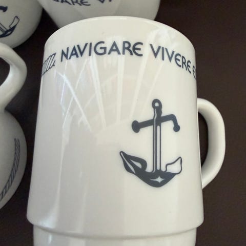 Selger 4 stk krus med maritim design.
