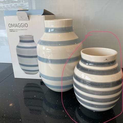 Kähler Omaggio minivaser i keramikk. Settet består av tre små vaser i hvit glasur med horisontale sorte striper. Vasenes form er rund med smal åpning øverst, egnet til enkeltblomster eller små buketter. Passer som borddekorasjon eller til bruk samlet som et lite sett i interiøret.