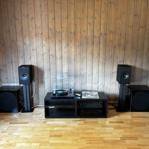 Det hele er pent brukt og høytalerene har noen få bruksmerker rundt forbi.