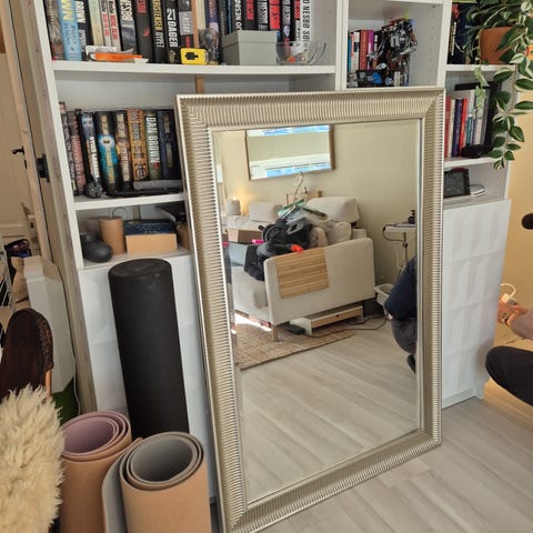 Stort møbelsnekret speil