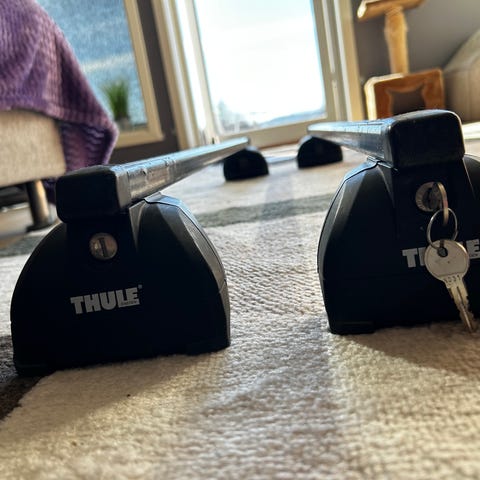 Thule takstativ aluminiumsbøyler med lås. Brukt på Volvo v60 2016