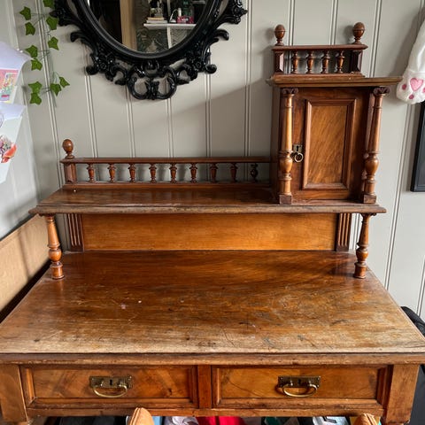 Nostalgisk gammel toalettkommode i heltre. Kommoden er i brukbar stand og har god plass for oppbevaring.