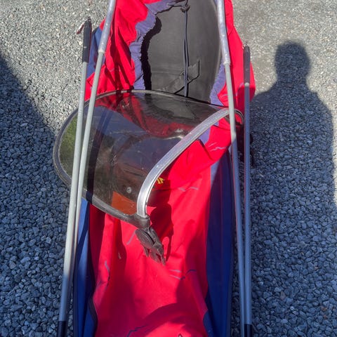 Pulk fra Fjellpulken med hoftebelte, trekk og skjerm selges. I god stand. Må hentes.