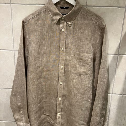 Råfin skjorte i lin. Regular fit. Fra kvalitetsmerket J.W.C. Mål på bilder. Målene er av tilsvarende skjorte i annen farge. 200 kr går til leger uten grenser