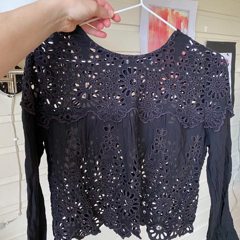 Søt Ganni-topp i engelsk blonde, str. 36. Lett og dekorativ med fin detaljering hele veien.
