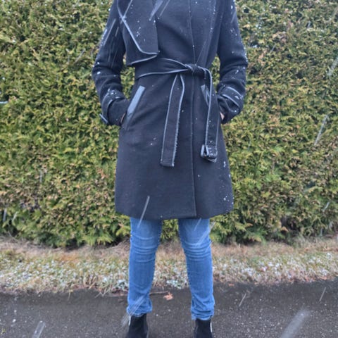 Days Like This-kåpe i feminint snitt. Størrelse 38. Kåpen er i ullblanding (55 % ull, 25 % polyester, 20 % viskose) med et glatt veldig behagelig fôr. Glidelås foran og lommer med glidelås i sidene. Passer som ytterjakke i overgangssesong og mildere vinterdager.