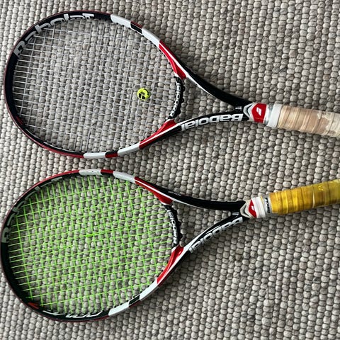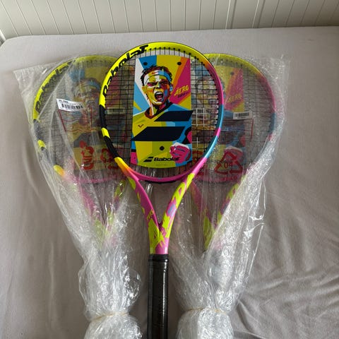To nesten nye Tecnifibre T-Fight 300 tennisracketer selges stykkevis eller samlet.