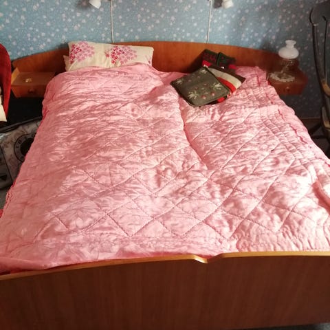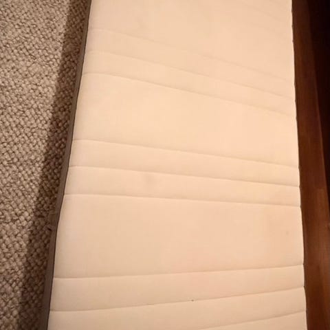 Sengeramme med bunn og nattbord i samme serie, selges samlet. Sengen måler 150 i bredde. Madrassene er kastet. Må hentes