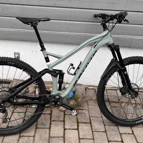 Fulldempet stisykkel selges, da denne dessverre tapte kampen mot elsparkesykkelen. Sykkelen er kun brukt noen få ganger, og framstår som ny. Sykkelen har rammestørrelse S og har en geometri som gjør den veldig lett å håndtere.