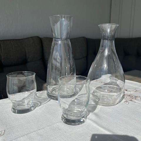 Kanne og 4 glass - ikke synlige spor av bruk- selges.