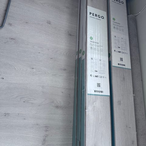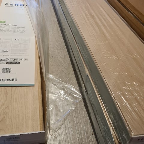 Har litt over 10kvm med laminatgulv fra Pergo laminat 1-stavs Trondheim fresh nordic oak.