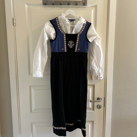 Festdrakt fra småtroll, med belte og skjorte. Ikke stor i størrelsen, heller litt liten