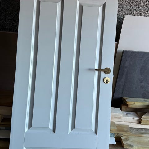Dør nr 1 har vært på bad. Den har fuktskader nede i kanten.