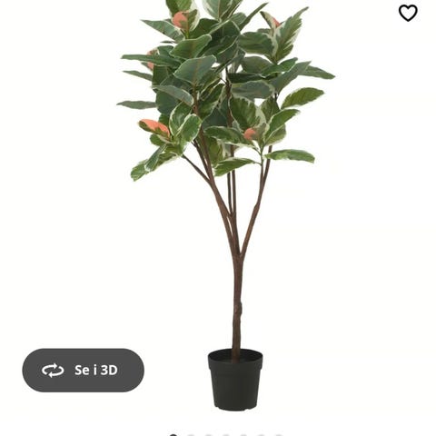Kunstig fikenplante inkl potte. Egner seg som dekorasjon innendørs eller på skjermede uteplasser, for eksempel på balkong eller terrasse. Kjøpt ordinært fra Bohus. Ca 1,80 m høy.