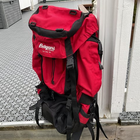 Lite brukt sekk med masse lommer og med magebelte.