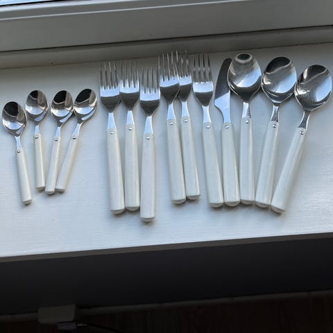 6 retro spiseskjeer selges samlet for 300 kr . Se bilder for tilstand . Alle skjeene er stødige ellers . Kan sendes med post nord for 70 kr eller posten eller fiks ferdig eller kan hentes etter avtale .