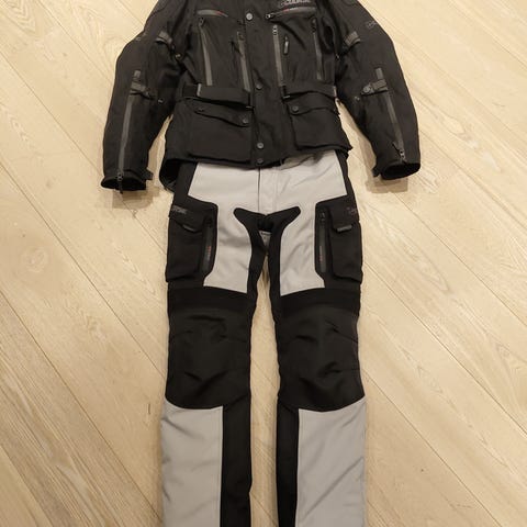 Course D-Airvent MC-dress i tekstil, bestående av jakke og bukse i grå/svart farge. Kjøpt i 2023 aldri tatt i bruk.