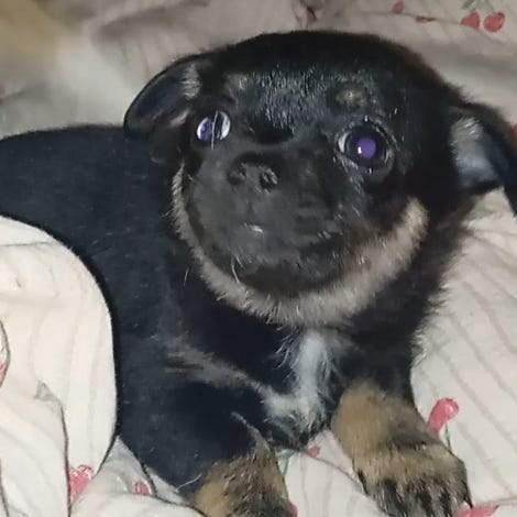 Nydelig liten chihuahua blandingsvalp født 2.mars 2026.Leveringsklar 1.mai. Marley er sunn og frisk og veldig menneskekjær. Rolig gemytt. Nydelig sort liten snute og en liten hvit haletipp. Marley er godt sosialisert med mennesker og dyr på gården våres. ( 2 voksne hunder og 2 katter) Han leveres med helsesjekk, vaksine og ormekur. Han får også med teppe med lukt av mammaen. Regner med at han blir rundt 3 kg som foreldrene.
