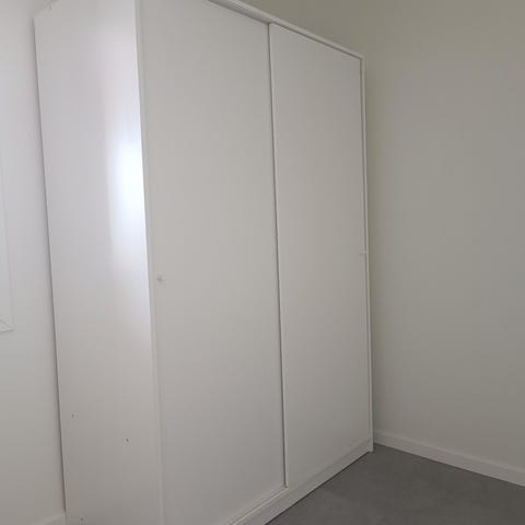 Noen bruktmarked på dørene og toppen av den lave delen. Det kan kjøpes nye dører på IKEA for rundt 200 kr.