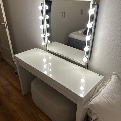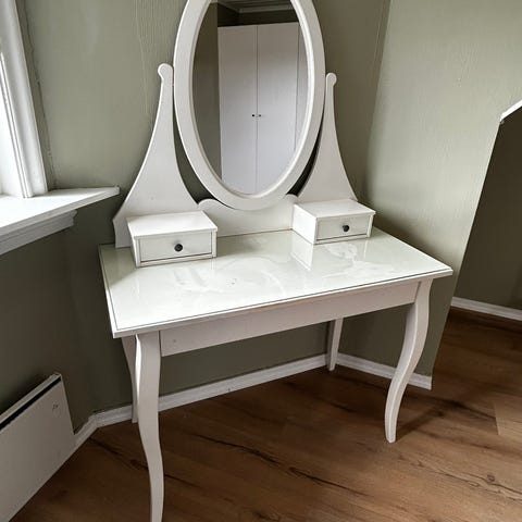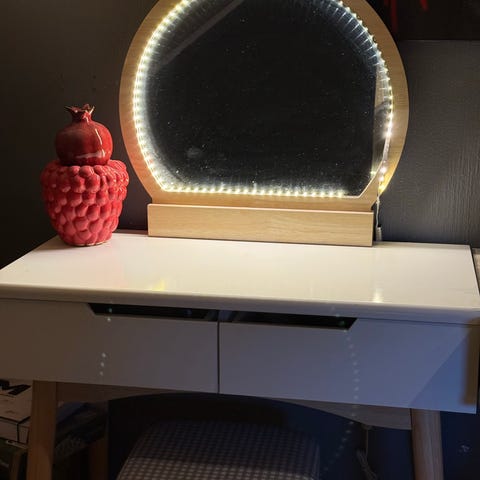 Konsoll bord/Sminkebord med speil og oppbevaringsplass under topp-plata