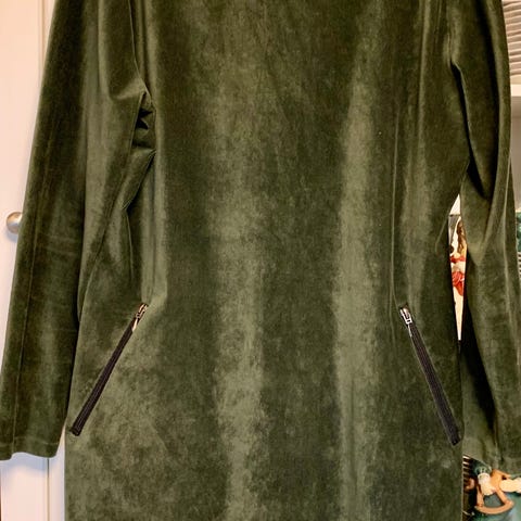 KO:KO Trude hverdagskjole for dame i størrelse 46. Kjolen er svart og laget i et mykt og elastisk materiale med 73 % bomull, 24 % polyester og 3 % elastan. Modellen har en enkel, rett fasong med trekvart lange ermer og lommer i sidene. Egner seg godt som en behagelig hverdagskjole til bruk både inne og ute.