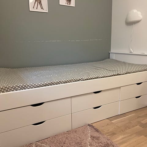 Link til senga: https://www.ikea.com/no/no/p/slaekt-seng-m-oppbev-ribbebunn-hvit-s29291956/