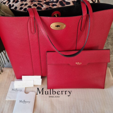 Pent brukt Mulberry tote i nydelig farge Oak. Kjøpt ny hos Mulberry i Gøteborg. Noe små kosmetiske bruksmerker på hjørnene og ved stoppene, se bilder. Selges da den fortjener å bli brukt mer.