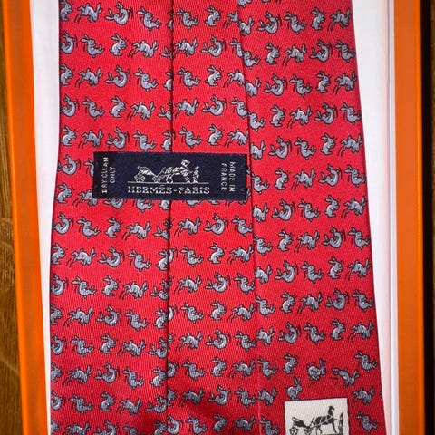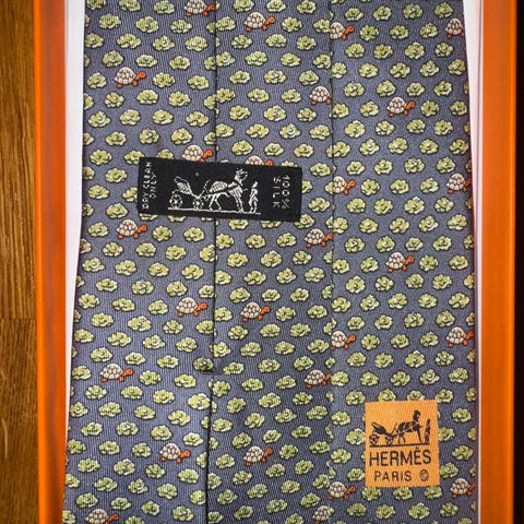 Blått Hermès slips med geometrisk mønster. Flekk som vist på siste bildet. Selges uten tilbehør.