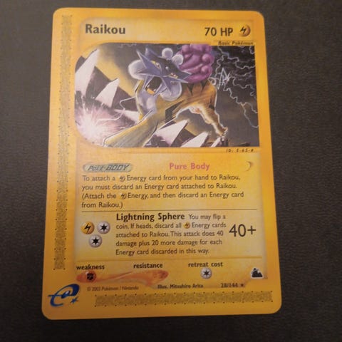 Pokemon Skyridge kort, Raikou holo og Rhydorn holo. Se bilder for tilstand