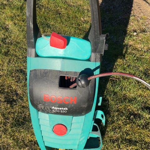 Selger en høytrykkspyler fra Bosch, kun brukt et fåtall ganger då jeg ikke får opp nok høyt trykk (vi har ekstremt lavt trykk på vårt vann).