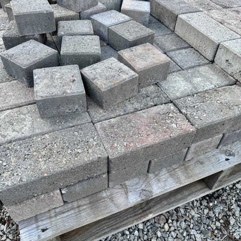 Ca. 6 kvadratmeter ligger lett tilgjengelig for å kunne hentes med henger. (Er tatt opp fra stedet de lå og ligger i en haug).