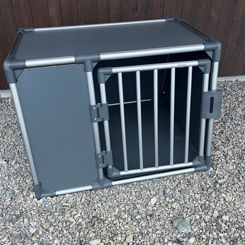 Trixi hundebur selges rimelig, veldig lite brukt. Mål i bunn er bredde 45cm, dybde 59cm og høyde 58cm (smalere øverst).