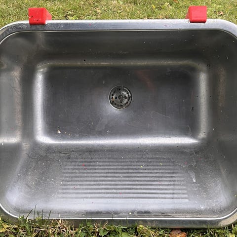 Vaskekumer i rustfritt stål med avløp i bunnen. Kummen har avrundede hjørner og Egner seg for bruk i vaskerom, garasje, verksted eller andre rom der det er behov