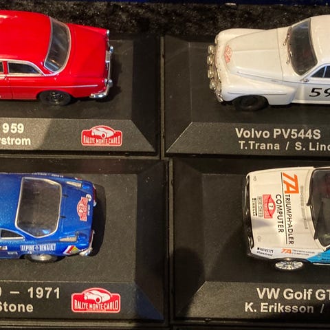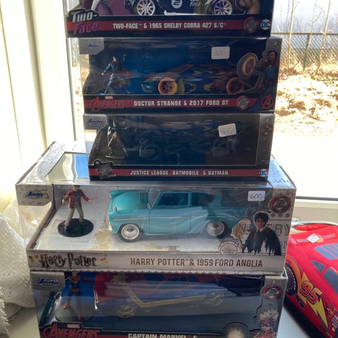 Selger ett snes med gamle modellbiler. Det kan være småmerker på noen, men alle fremstår som i god stand.