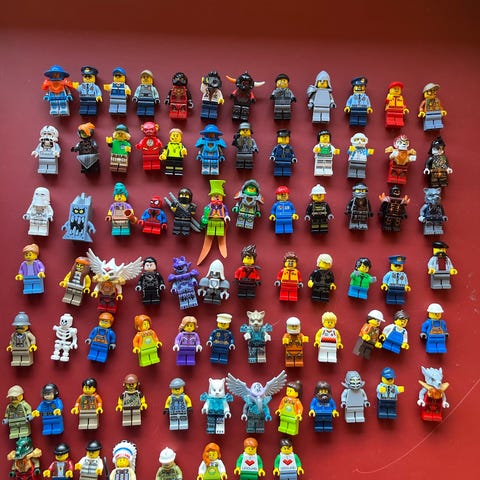 Fra masse forskjellige serier helt fra 90 tallet til star wars, cmf, castle chima, ninjago osv osv.